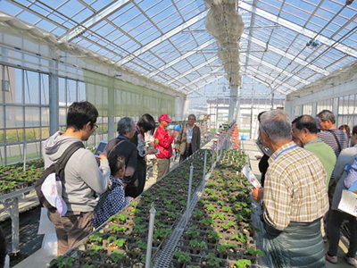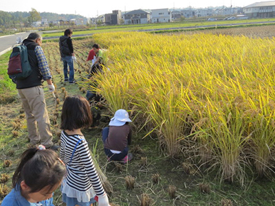 「京大農場におけるグリーンエネルギーファーム」を基本テーマとした公開講座、農場内を巡る農場ツアー(水田・果樹コース、蔬菜・花卉コース)、農業体験「イネの収穫」、公開ラボ「渋柿の渋抜き」「台所用品でDNA抽出」の他、各種展示や農場農産物の即売を通して、農業生産に関わる先端的研究、農学教育、実践的農業生産など、多面的機能を有する附属農場の活動内容を公開しました。776名の参加があり、特に農産物の即売や農場ツアーは大盛況となりました。公開ラボや農業体験の人気も高く、事前受付で早々に定員は埋まり、実験器具展示やポスター展示では来訪者が熱心にスタッフの説明に聞き入っていました。公開講座も講義室が満席となり、講義後には活発な質疑が行われました。