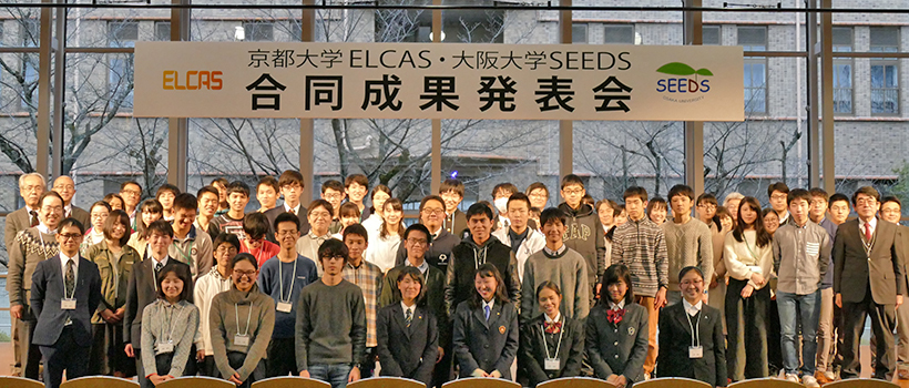 本学が推進するグローバルサイエンスキャンパス「科学体系と創造性がクロスする知的卓越人材育成プログラム(ELCAS)」と大阪大学が推進する「世界適塾の教育研究力を活かしたSEEDSプログラム」による合同成果発表会を時計台百周年記念館にて開催しました。