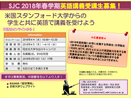 スタンフォード日本センターStanford Japan Center(SJC)が提供する、英語講義の受講を希望する京都大学学生を募集します。
