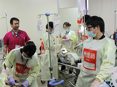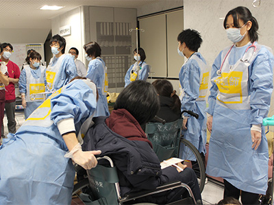 医学部附属病院は、京都府災害拠点病院(2015年4月1日指定)として、今後も継続的に災害対策訓練を実施することにより、災害対応力の強化を図ってまいります。