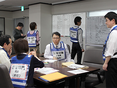災害対策本部においては、災害対策本部長(稲垣暢也 医学部附属病院長)及び災害ゼネラルマネージャー(小池薫 同院救急部長)の指揮の下、各病棟等から提出される発災時報告書・チェックリストの収集・整理、院内外被災情報の収集、要解決事項・要請事項に対する対応の検討、各エリア・担当・関連部署間の連絡・調整、EMIS(広域災害医療情報システム)入力、空床の確認、医薬品の在庫確認及び国立大学病院災害対応バックアップシステムの運用等を行いました。