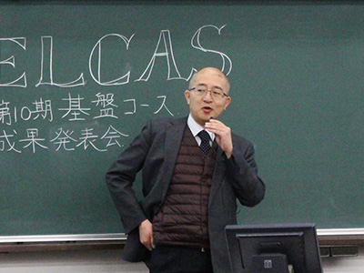 本学が推進する「科学体系と創造性がクロスする知的卓越人材育成プログラム(略称ELCAS)」の基盤コース第10期成果発表会および平成29年度閉講式を開催しました。当日は、2017年9月から2018年2月まで探究活動を行った基盤コース受講生(134名中131名が参加)が、19分野 各2チームに分かれてその成果について発表会を行いました。また、同日に専修コース第9期修了証書授与式が行われました。