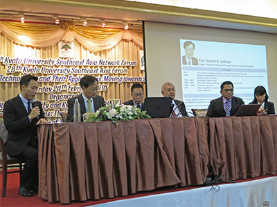 フォーラムの開会にあたり、寺島史朗 在タイ日本国大使館一等書記官、稲葉カヨ 理事・副学長の挨拶に続いて、坂志朗 本学名誉教授、Kajornsak Faungnawakij(National Nanotechnology Center, National Science and Technology Development Agency)、Thevarak Rochanapruk氏(Power of Asia Public Company limited)等による基調講演を行いました。午後からは、石原慶一 エネルギー科学研究科教授による JASTIP 紹介の後、“21th Energy Outlook - Moving towards Sustainable Society”をテーマにパネルディスカッションを行い、石原教授、Jose V. Camacho, Jr.(University of the Philippines, Los Banos (UPLB))、Boonrod Sajjakulnukit(King Mongkut's University of Technology Thonburi)、古川善規 New Energy and Industrial Technology Development Organizationバンコク事務所長等による意見交換が行われました。