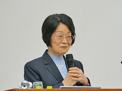 挨拶する稲葉理事・副学長(講演会)