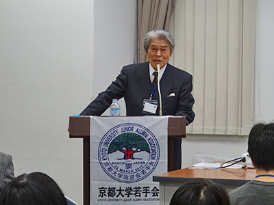 基調講演では、西澤宏繁 元企業再生支援機構初代社長(経済学部・1961年卒)が「『君たちはどう生きるか』をめぐって」と題し、「失われた20年」の間に社会人になった若手の世代を対比し、現在は「個の時代」となっていると指摘、そのような時代に、起業して活躍している若手経営者について触れ、生き方について力説されました。
