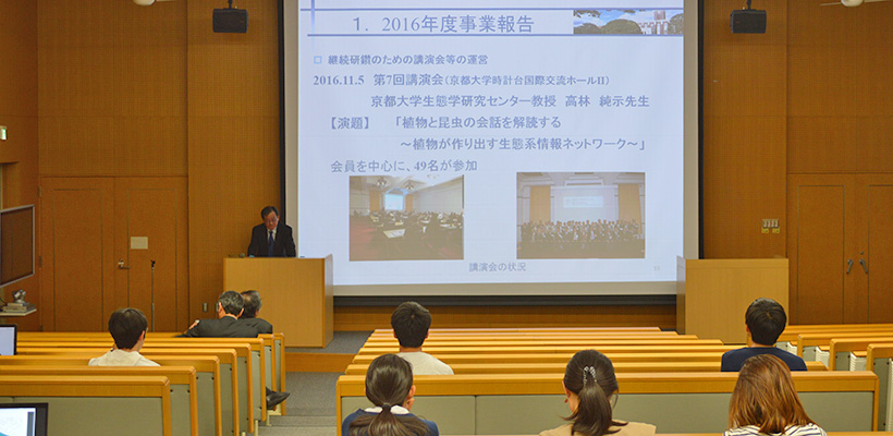 次に、田岡直規 副代表幹事(工学研究科・1983年修了)から京都大学技術士会の紹介と、上田泰史 幹事(農学研究科・1983年修了)から試験制度を含めた技術士制度の説明がありました。