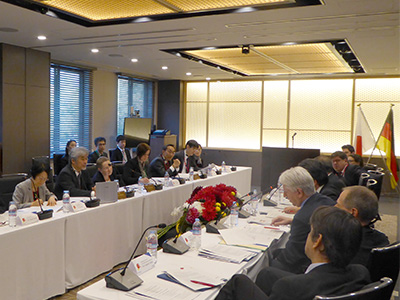 初日の全体会議は、西尾章治郎 大阪大学総長による開会の挨拶で開幕し、牛尾則文 日本学術振興会(JSPS)理事、Thomas Hirth カールスルーエ工科大学副学長、Werner Koehler 大阪・神戸ドイツ連邦共和国総領事からの挨拶と、山口英幸 日本学術振興会(JSPS)国際事業部人物交流課長、ドイツ学術交流会(DAAD)のDorothea Mahnke氏、ドイツ研究振興協会(DFG)のJoerg Schneider氏からそれぞれの助成事業の紹介の後、柳田敏雄 大阪大学脳情報通信融合研究センター長から、ヒト脳機能のイメージングと情報科学が融合した新しい脳科学研究について基調講演があり、最新の研究内容を紹介されました。