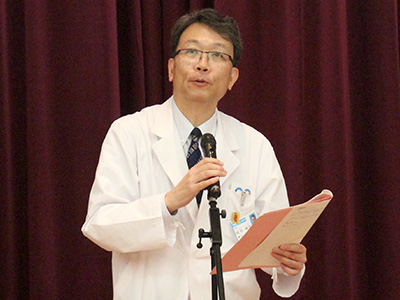 受賞者発表を行う稲垣病院長