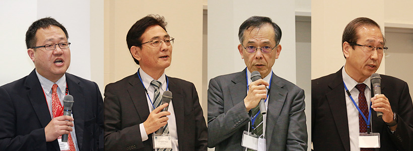 左から、田中寄附研究部門特任教授、湊理事、森院長、北川拠点長