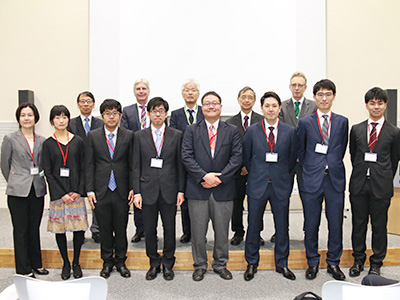 続いて、田中寄附研究部門特任教授からiCeMS-CiMPhyが担う医学と物理の融合研究が目指す未来へのビジョンについての講演がありました。出席者全員での記念撮影後、同部門の客員教授であるAnthony D. Ho ハイデルベルグ大学教授(血液内科学)、Thomas Holstein 同教授(発生生物学)、太田隆夫 名誉教授(理論物理学)、Martin Bastmeyer カールスルーエ工科大学教授(細胞生物学)、吉川研一 名誉教授・同志社大学教授(非線形物理学)が、それぞれの研究と田中寄附研究部門特任教授とのこれまでの連携、また寄附部門における研究計画などについて招待講演を行いました。