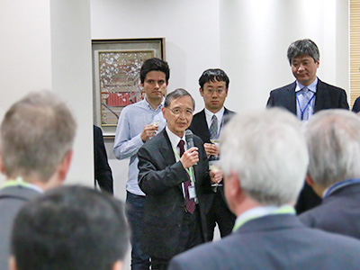 はじめに、同拠点の代表である田中求 高等研究院寄附研究部門特任教授から挨拶と同拠点についての説明があり、続けて、湊長博 理事・副学長・プロボスト、森重文 高等研究院長、北川進 同物質-細胞統合システム拠点(iCeMS)拠点長からそれぞれ挨拶がありました。