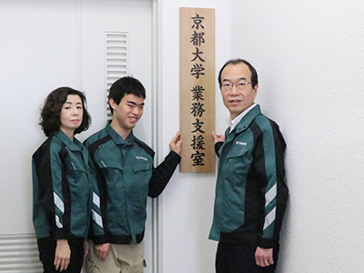 「京都大学業務支援室」は、WINDOW構想(Diverse and Dynamic)におけるダイバーシティ推進のもと、障害者雇用の促進の一環として2018年4月1日に設置されたものです。業務支援室では現在、キャンパス内の事務支援業務や医学部附属病院等の清掃業務に取り組んでいます。