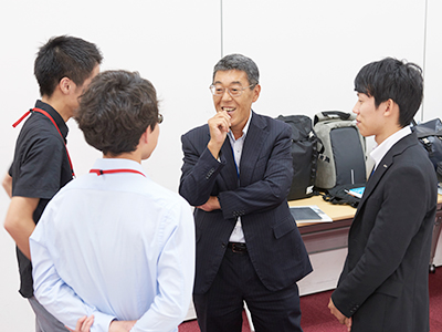 続いて学生と寄附企業との歓談が行われました。最後に奨学生代表の学生が「奨学金のおかげで、経済的な不安なく大学に通うことができている。興味を持っている分野を中心に、今後はより一層勉学に励んでいきたい」と述べました。