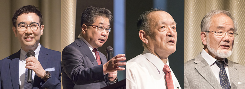 左から、福岡教授、森教授、長田栄誉教授、大隅栄誉教授