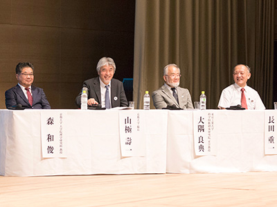 シンポジウムでは、「生命の神秘とバランス」を統一テーマとして、2012年に京都賞基礎科学部門を受賞された大隅良典 東京工業大学科学技術創成研究院栄誉教授を中心に、福岡伸一 青山学院大学総合文化政策学部教授、長田重一 大阪大学免疫学フロンティア研究センター 栄誉教授、森和俊 京都大学理学研究科教授の4名が、一般市民、学生、研究者など合わせて約550名の参加者に対し、それぞれの研究成果や最先端の話題などの興味深いテーマについて語りました。また、講演者の意向を反映し、高校生枠を設けた今回は、参加者の約半数が高校生であったことから、講演者からは若い世代に向けたメッセージも熱く語られました。