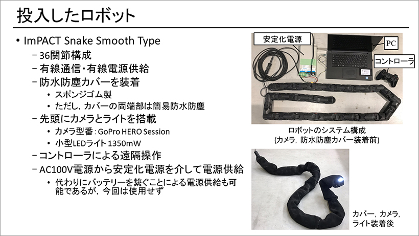 投入したヘビ型ロボット「ImPACT Smooth Type」
