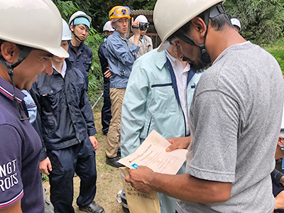 工学研究科機械理工学専攻メカトロニクス研究室の松野文俊 工学研究科教授、藤原始史 同特定助教、多田款 同研究員、竹森達也さん(博士課程1年生)、谷重崇未さん(修士課程2年生)、野村祐裕さん(修士課程2年生)が、岡山県半田山のがけ崩れで倒壊した家屋や立ち入り禁止となったアパートで、ロボットを用いた災害対応活動を実施しました。