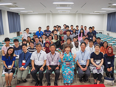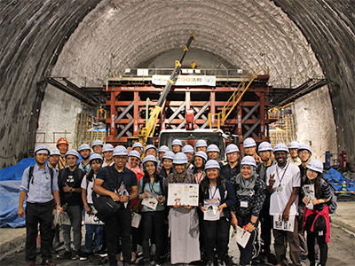 工学研究科社会基盤工学専攻・都市社会工学専攻は、ワイルド&ワイズ共学教育受入れプログラム事業として「強靱な国づくりを支える国際人育成プログラム」を実施しました。工学研究科への短期交流学生として参加したのは、アジア工科大学、チュラロンコン大学、カセサート大学(タイ)、国立成功大学(台湾)、ヤンゴン工科大学、マンダレー工科大学(ミャンマー)、ベトナム国家大学(ベトナム)、ブラウィジャヤ大学(インドネシア)より22名です。本学の工学研究科および経営管理教育部の学生18名、関西大学からの特別聴講学生5名とあわせて総勢45名が参加し、安寧な都市を実現するための災害・健康リスクマネジメントについて学びました。