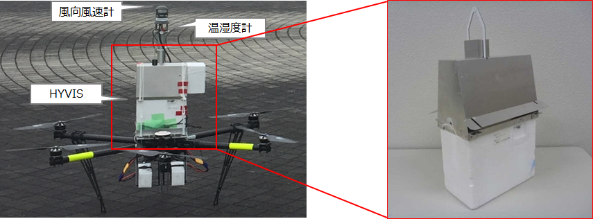 気象センサーと雲粒子ゾンデ(HYVIS)を搭載したドローン