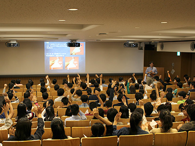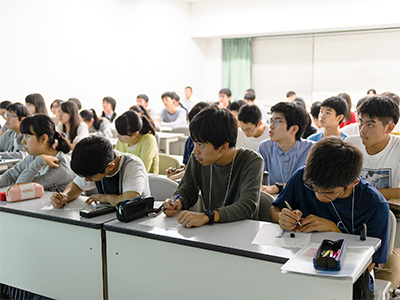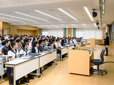 有賀哲也 副学長(高大接続・入試センター副センター長・理学研究科教授)の挨拶の後、受講生は理系や文系など多岐にわたる10講座の内2講義を選択して受けました。