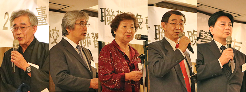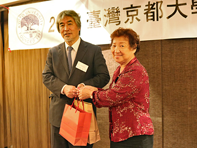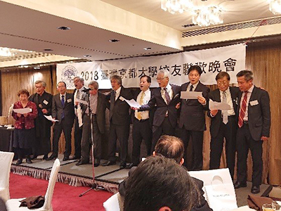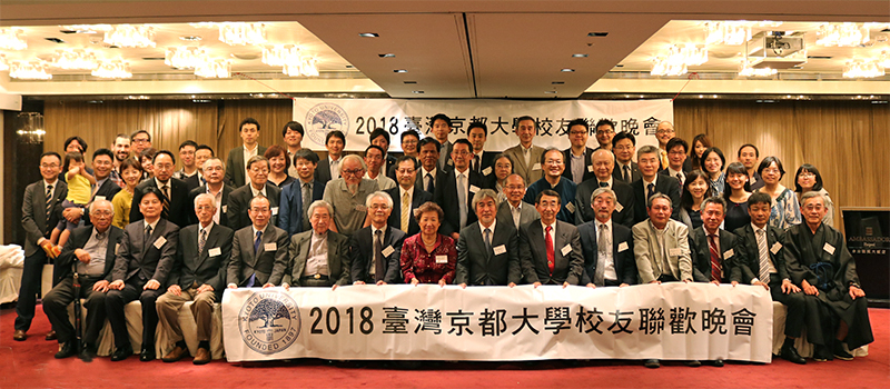 Kyoto iUP事業の一環である「7 Days in Taiwan」に伴う、山極壽一 総長をはじめ、関係理事の台湾訪問を機に、台北市内の台北国賓大飯店の摘星楼において、現地在住の同窓生との交流を図り、同窓生同士や本学関係者との親睦を深め、更なる愛校心を醸成することを目的として臺灣京都大學校友聯歡晩會が開催されました。同会は、本学と、主に本学に留学等の経験を持つ卒業(修了)生が中心となって構成されている台湾京都大学同窓会、主に邦人の卒業(修了)生で構成されている台湾吉田会との共催で行われ、計111名が参加しました。