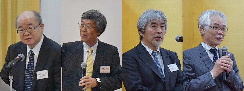 左から、伊藤名誉教授、美濃名誉教授、山極総長、北野理事・副学長