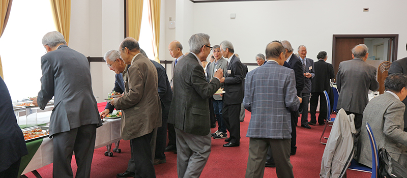 百周年時計台記念館国際交流ホールにおいて第91回名誉教授懇談会を開催しました。72名の名誉教授の他、総長、理事、監事、部局長等あわせて90名が参加しました。