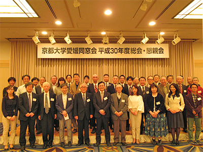松山市内のホテルにおいて、京都大学愛媛同窓会総会が開催されました。京都大学愛媛同窓会は、本学卒業生で愛媛県に在住または愛媛県出身者を会員とする同窓会です。