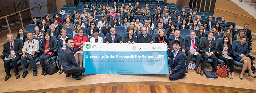 第4回目となる今回のサミットは、「Universities’ Social Responsibility in Shaping a Future of Critical Hope」をテーマとし、世界各国の高等教育機関関係者、行政関係者、地域社会の指導者等100名を超える参加者が集いました。3日間のサミットで参加者たちは、イスラエルのハイファとエルサレムの2都市の会場で、様々な観点で意見交換を行いました。
