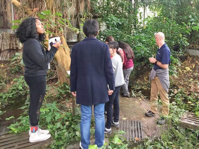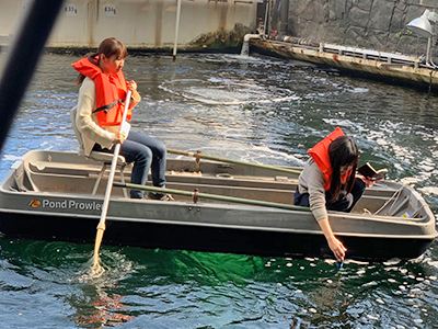 実習は、本学の学生3名とアリゾナ大学の学生2名が2チームに分かれ、3日間にわたって行われました。惑星における二酸化炭素や水の循環、火星上の砂漠環境、閉鎖した集団生活における精神状態の管理などのテーマについて講義を受けたほか、ボートに乗って塩水に溶解した二酸化炭素の量とpHの関係を調査するなど、B2の海洋・森林・砂漠の各施設における実習にも取り組みました。最終日には、チームごとに実習で蓄積したデータを解析し、成果発表を行いました。