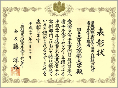 この度、本学の環境賦課金制度による継続的な取組みや成果が評価され、平成30年度省エネ大賞(一般財団法人省エネルギーセンター主催、経済産業省後援)において、省エネ事例部門の省エネルギーセンター会長賞を受賞しました。