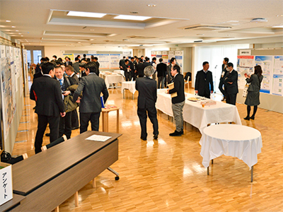 シンポジウムは、佐藤直樹 理事・副学長と、来賓の深堀直人 文部科学省大臣官房文教施設企画・防災部計画課整備計画室長の挨拶で開会となりました。シンポジウム前半は「中国・上海の大学キャンパス省エネ実証事業」及び「IoTによる省エネとコミュニティエネルギーの進化」と題した2件の基調講演が行われ、後半のポスターセッションでは、18団体より30を超えるポスターが出展され、「環境配慮」、「省エネ」、「減災」の各分野において発表者、参加者全員による活発な議論や意見交換が行われました。