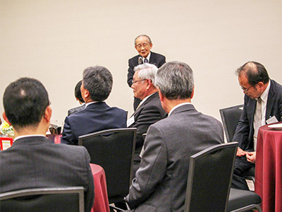 また、講演会終了後、鹿児島の同窓会組織である鹿児島東山会との懇親会を開催しました。本学からは稲葉理事・副学長、井口教授および大学関係者が出席しました。最初に稲葉理事の挨拶があり、続いて、丸元貞夫 鹿児島東山会会長(経済学部・1963年卒)による乾杯の発声ののち開宴となりました。和やかな交流が進み、海江田順三郎 鹿児島東山会顧問(経済学部・1953年卒)の結びの挨拶により、盛会のうちに閉会となりました。