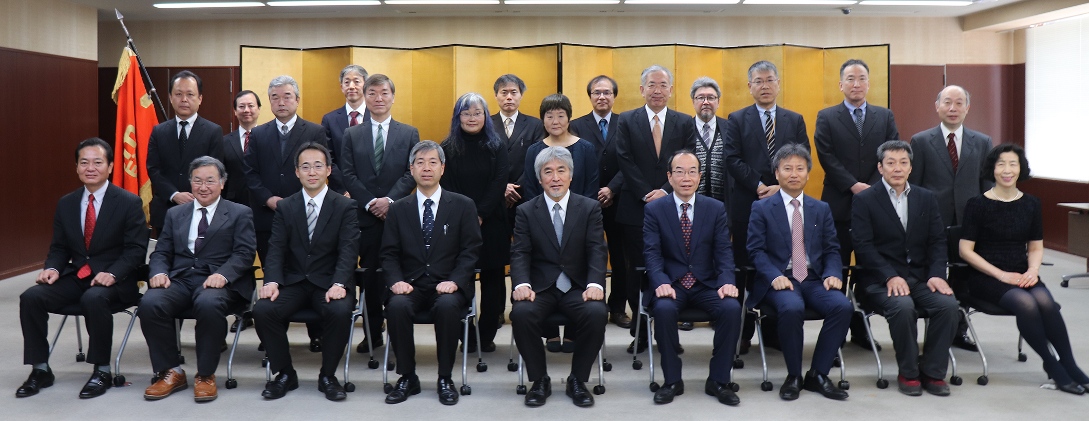 退職者功労表彰式を本部棟5階大会議室において開催し、山極壽一 総長、森田正信 理事、中村一也 総務部長、横山陽一 総務部次長、被表彰者18名が出席しました。