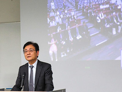 シンポジウム当日は、マヒドン大学サラヤキャンパスの会場と、地球環境学堂(京都会場)を遠隔装置とスライド共有システムでつなぎ、2会場で同時開催をしました。 マヒドン会場には上野文誠 在タイ日本大使館一等書記官、山下邦明 JSPSバンコク研究連絡センター長が臨席し、マヒドン大学からはBanchong Mahaisavariya マヒドン大学長、Yodchanan Wongsawat 副学長を始めとした大学執行部、本学からは舟川晋也 地球環境学堂長、柴山守 ASEAN拠点所長、藤井滋穂 地球環境学堂教授、米田稔 工学研究科副研究科長、神埼護 農学研究科教授、安藤博 企画・情報部 企画課長および安達まり子 国際戦略本部特定講師、さらに両国学生を交えて約100名が参加しました。京都会場には湊長博 プロボスト 理事・副学長を始め、学内の教員、学生、事務職員55名が参加しました。