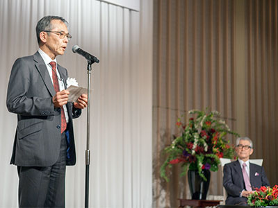 最後に共同研究者でもある湊長博 プロボスト 理事・副学長から閉会の挨拶があり、スウェーデンでの本庶特別教授のノーベルレクチャーにノーベル賞関係者からも大きな賛辞が送られたことなどを紹介しました。また、閉会後もたくさんの方が本庶特別教授を囲み、大変温かい会となりました。