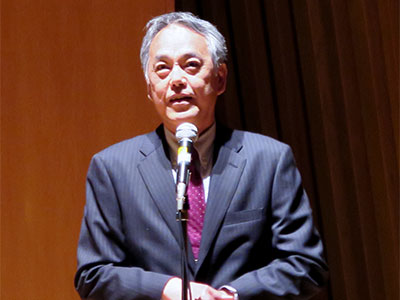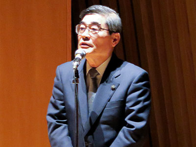 挨拶する橋本学 防災研究所長(宇治地区世話部局長)