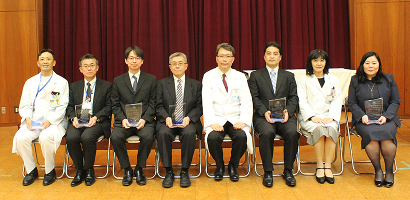 この病院長賞は、同院における教育、研究、診療、管理運営等について、極めて顕著な貢献があったと認められる若手教職員又は診療科等を表彰する制度として設けられ、全12組の個人及び団体の推薦の中から4組の受賞者を決定し、表彰しました。