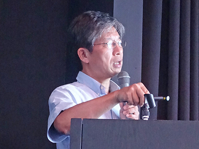 学術講演を行う戸口田副所長