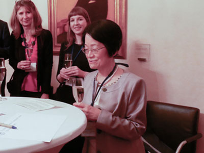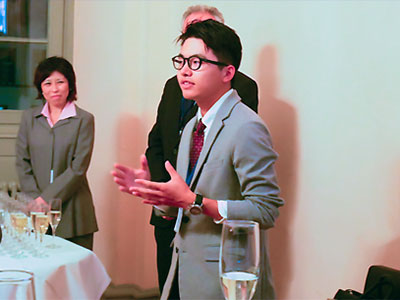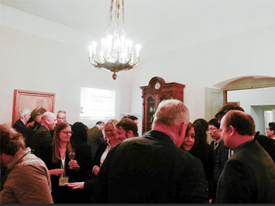第二部のレセプションは、ハイデルベルク大学の貴賓室 Bel Etageに場所を移して行われました。稲葉カヨ理事・副学長の乾杯挨拶に始まり、本学の協定校であるボルドー大学の Laurent Servant 副学長から祝辞がありました。また、ハイデルベルク大学で留学中の本学学生が経験談を交えた挨拶を行いました。