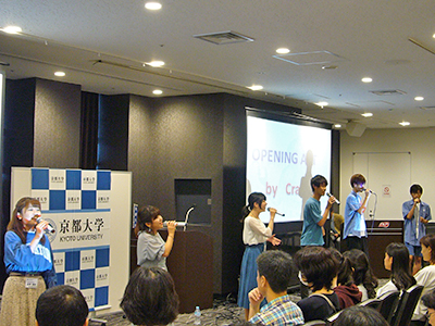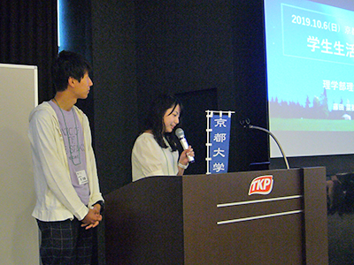 東京会場では、京都アカペラサークル「CrazyClef」によるオープニングアクトを皮切りに、京都大学の概要紹介、市川光太郎 フィールド科学教育研究センター准教授による模擬授業、関東地区出身の特色入試合格者及び一般入試合格者による学生生活レポートなど盛りだくさんのプログラムを行い、参加者に対し本学の雰囲気や魅力を伝えました。