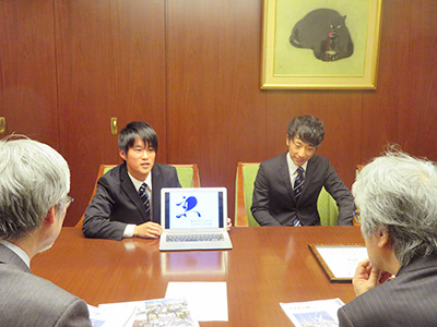 体育会ヨット部は、2019年10月30日~11月4日に兵庫県西宮市新西宮ヨットハーバーで開催された第84回全日本学生ヨット選手権大会スナイプ級で優勝したことを山極総長と川添理事・副学長に報告しました。