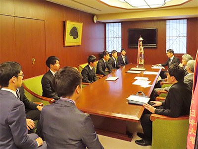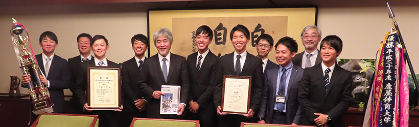 山極総長は優勝報告を受け、今後の京都大学の体育会に寄せる期待を述べました。和やかな雰囲気のなか、表敬訪問は終了しました。
