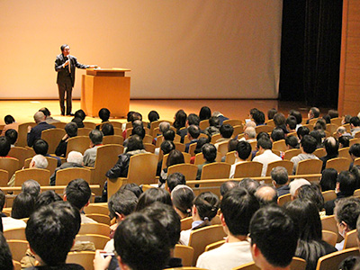 「どうすれば幸福になれるか」と題した講演で岸見氏は、始めに京都大学在学時のエピソードに触れ、「病に倒れた母の看病を通して、人間にとっての幸福について考えるようになった」ことが、哲学者の道に進むきっかけになったと述べました。次に哲学者の三木清氏の抹殺された動機論について説明を行った後、本題である「どうすれば幸福になれるか」について具体的に説明を行いました。岸見氏は幸福になるためには、第一に人からどう思われるか気にしない、第二にありのままの自分を受け入れる、第三に今ここを生きる、と大きく三つの側面に分け、その詳細について解説を行いました。最後には「人はただ生きることに価値がある」とし、講演を締めくくりました。