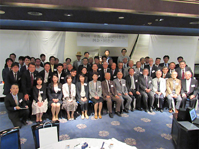 例会終了後の懇親会は、唐池恒二 副会長(法学部・1977年卒)の発声による乾杯の後、会員相互の交流が深められました。若い会員の参加も多く、賑やかに盛り上がる中、出席者全員で「紅萌ゆる」と「琵琶湖周航の歌」を合唱し、鎌田迪貞 名誉会長(経済学部・1958年卒)の挨拶により閉会となりました。