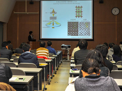 本研究発表会は、一般、関連研究機関、所内から延べ130名を超える参加者を得て、最先端の多彩な研究成果のわかりやすい発表と活発な討論により盛況のうちに終了しました。終了後には宇治生協会館にて懇親会が行われ、同研究所所属の教職員・大学院生ら多数が参加しました。