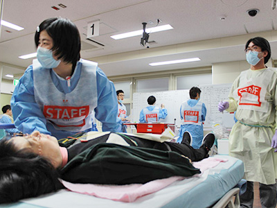 医学部附属病院は、京都府災害拠点病院(2015年4月1日指定)として、今後も継続的に災害対策訓練を実施することにより、災害対応力の強化を図っていきます。