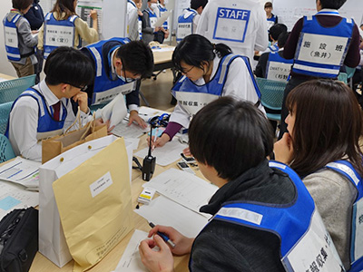 各部署からの情報を確認する災害対策本部要員
