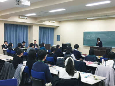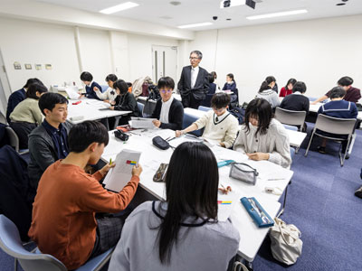 また、1月11日には、人文社会科学分野「クリティカルシンキングで考えるビジネス」(指導:若林靖永 経営管理研究部 教授)の受講生が演習中に行ったグループワークについて、グループごとに発表し、講評の後、閉講式を行いました。そして、1月25日に 法学・政治学分野(指導:佐々木健 法学研究科教授、稲谷龍彦 同准教授 )では、受講生が受講を通して考えた内容を口頭で発表し、山本敬三 同研究科長が修了証の授与と閉式の挨拶を行いました。
