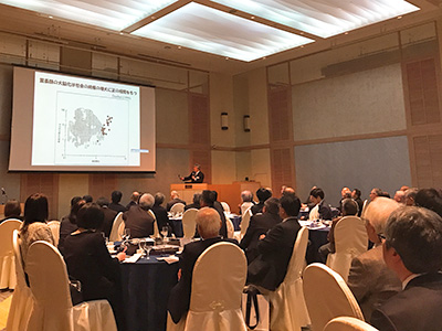 総会では、山極総長が「コミュニケーションの進化と京都大学の人材育成」と題し講演を行いました。山極総長はゴリラや人間の比較から、コミュニケーションがいかに変容してきているか、また、インターネットが当たり前となっている現代に対する鋭い分析から、これから必要となる人材の在り方について説明し、参加者は、熱心に耳を傾けました。 続いて、京都大学同窓会事務局および京友会事務局より報告があり、新たに京友会の会 長として志田洪顯 会長(工学部・1969年卒)が選任されました。